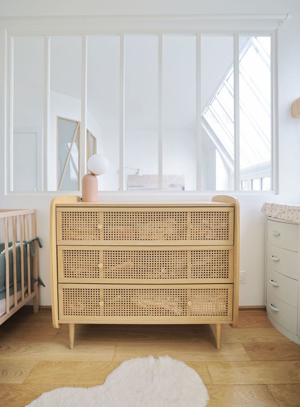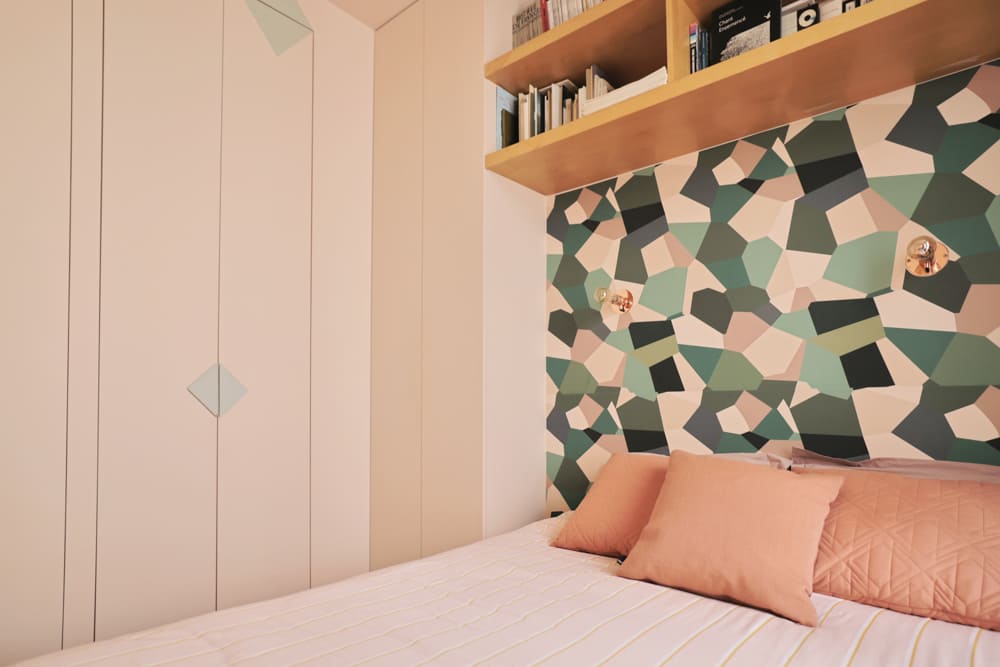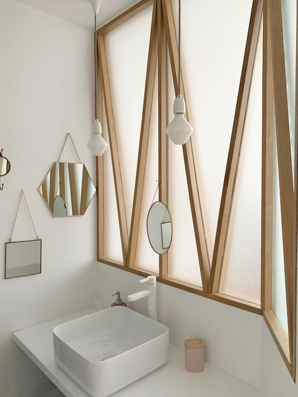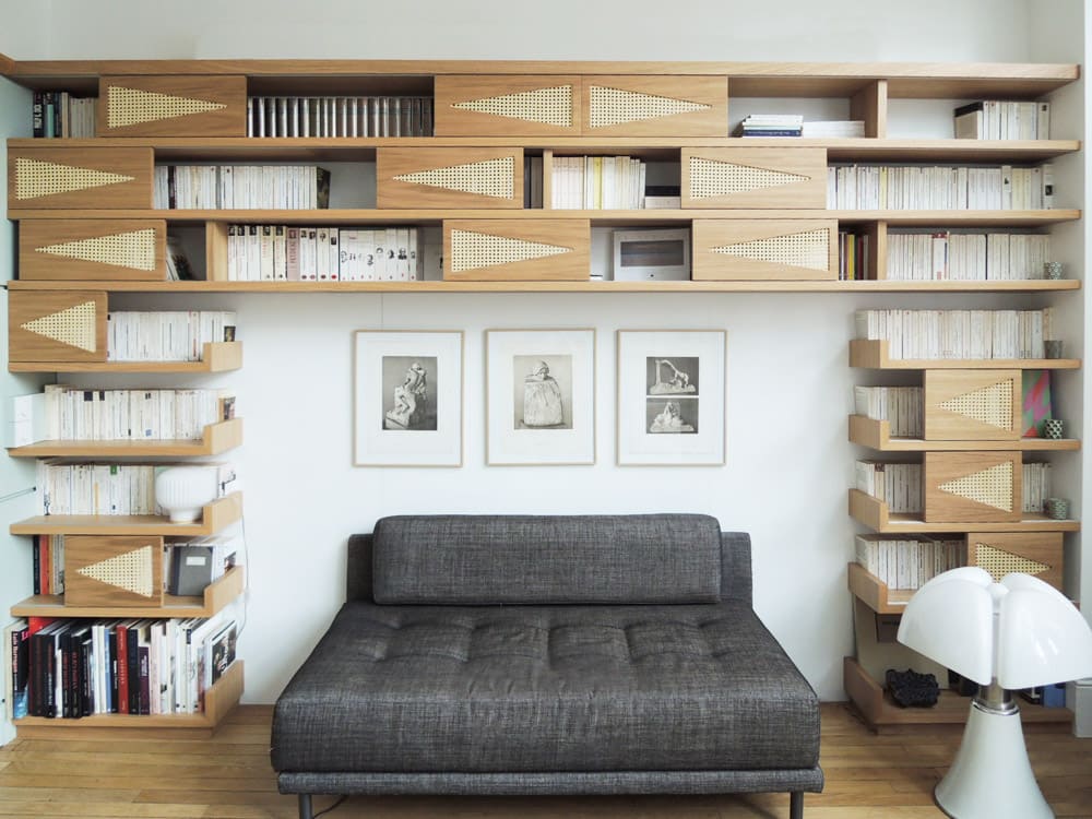 Rénovation complète d’un ancien atelier d’artiste parisien en duplex situé au cœur du 14ème ar. de Paris. Conçu par l’architecte Paul Schroeder en 1912, cet ancien atelier niché aux 2 derniers étages de l’immeuble, bénéficie d’un charme fou : son espace de vie central à l’exceptionnelle hauteur sous plafond (6m) est baigné d’une lumière zénithale constante et homogène. Les verrières du Nord plongent ses habitants dans un ciel en perpétuel mouvement mais aussi dans les feuillages des 2 grands peupliers de la cour intérieure. Au cœur de l’appartement, les espaces de vie sont ouverts les uns aux autres tout en proposant des agencements sur mesure aux multiples rangements. Le plan de travail en corian de la cuisine vient à la rencontre d’un plan en bois tel un puzzle. Une bibliothèque en chêne semi-ajourée par des panneaux coulissants en cannage joue du motif triangulaire et oblique flottants juste au-dessus par la présence d’une mezzanine au plan triangulaire. La chambre parentale redistribue son dressing tout en lui intégrant une nouvelle et invisible salle d’eau. A l’étage, telle une maison perchée, les chambres des enfants se répartissent côté Sud et côté Nord, exploitant ainsi une 2de mezzanine largement vitrée pour y accueillir le dernier né de la famille agrandie. Le projet devient ainsi une formidable occasion d’offrir à ces lieux chargés d’histoire un nouveau bain de jouvence.